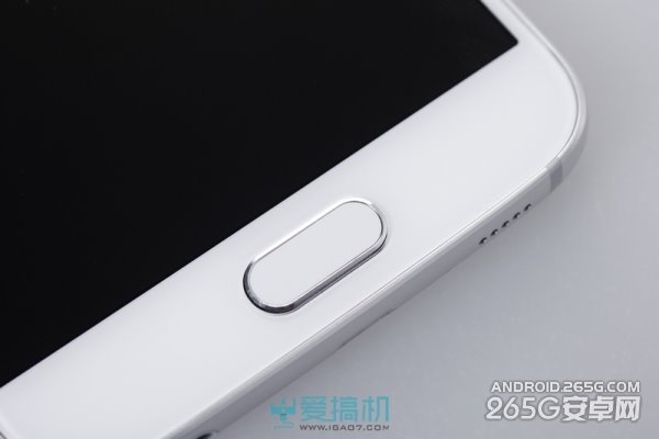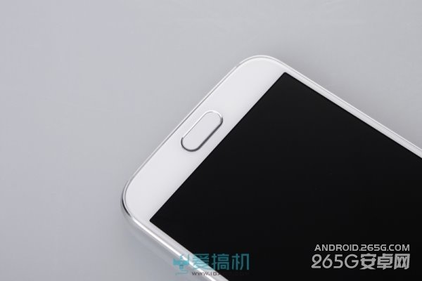 由于实体Home带有按压式指纹识别传感器,所以可以看出Home键突起比较明显,面积也要比Galaxy S5更大。