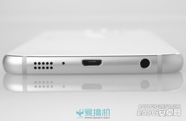 底部中置microUSB接口,没有使用上USB3.0甚至USB3.1,3.5mm耳机接口以及扬声器在两侧,扬声器和microUSB接口之间还有一个通话麦克风。这个底部造型不少用户都吐槽说跟iPhone6很像,实际上它更像Galaxy Alpha。