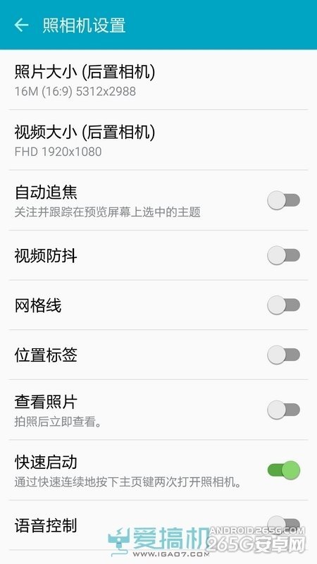 可以手动打开视频防抖功能,同时只是快速启动相机,只要连续按下两次Home键即可实现快速启动。