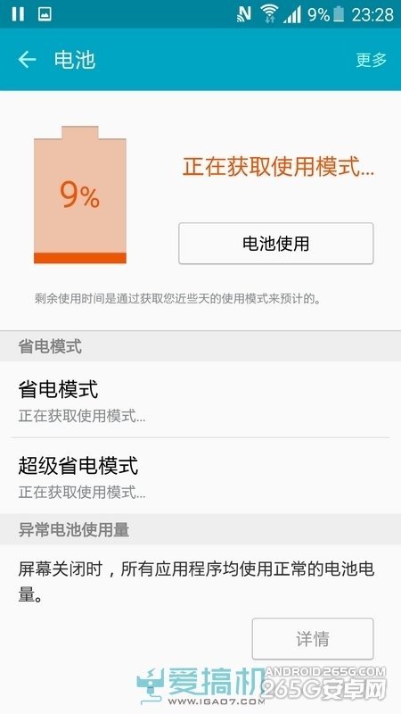 电池管理和以往在系统设置中见到的差不多,包含了省电模式以及超级省电模式(黑白画面),打开省电模式以后会大幅增强手机的续航能力,但是性能会大幅降低。