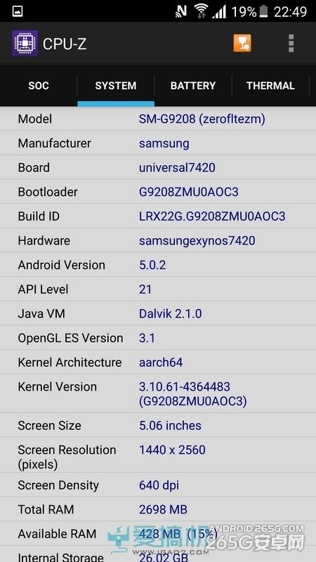 Galaxy S6系统基于Android 5.0.2,内核版本是3.10.61.