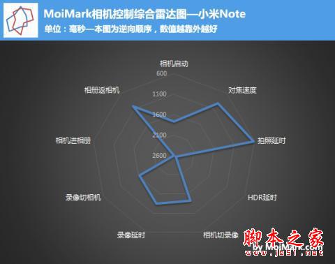 图中反映,小米Note在HDR延时和相机进入相册耗时均超过2秒,这种体验在从相机进入相册的延时并不明显,而进行HDR拍摄时,超过2秒的速度手部轻微抖动都可能造成最终成像效果不佳。而值得赞扬的是,小米Note在对焦速度和拍摄速度上较为理想,在抓拍能力上具备一定优势。