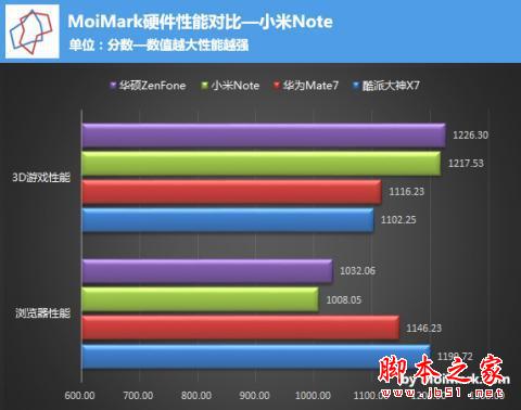 小米Note使用了高通骁龙801处理器,与联发科MT6595、海思麒麟925、Atom Z3560处理器视为同等级,其GPU分别为Adreno 330、PowerVR G6200、Mail-T628、PowerVR G6430,这里,我们取小米Note、酷派大神X7、华为Mate7和华硕ZenFone2的跑分结果,看看小米Note在3D游戏和浏览器性能上处于何种水平。