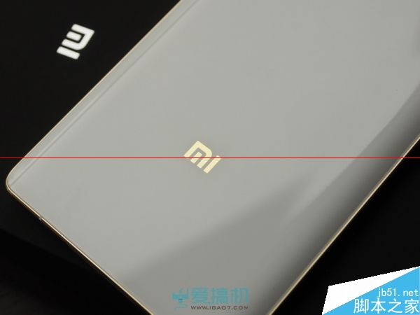 手机背部的logo处特写,可以看出小米Note顶配版的logo颜色换成金色,底下相关信息也去掉了。