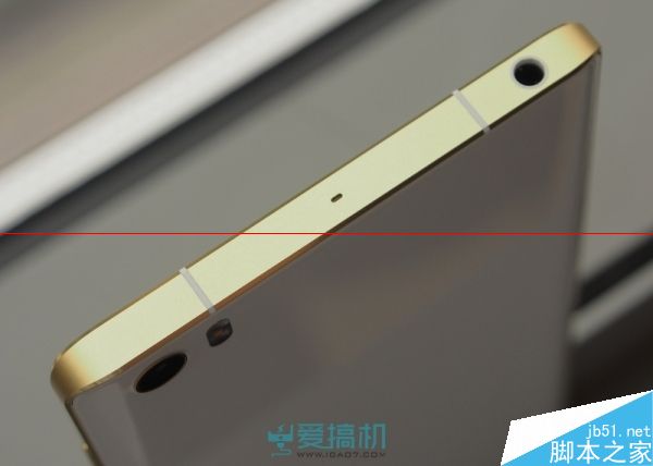 香槟金的小米Note顶配版采用了金色边框设计,天线隔断条是白色的,顶部有3.5mm耳机接口以及降噪麦克风。