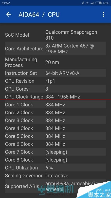 而当CPU自动调节频率的时候四个A53核心会处在最高频率上,A57核心则关闭两个,此时的流畅度也会受到一定影响。