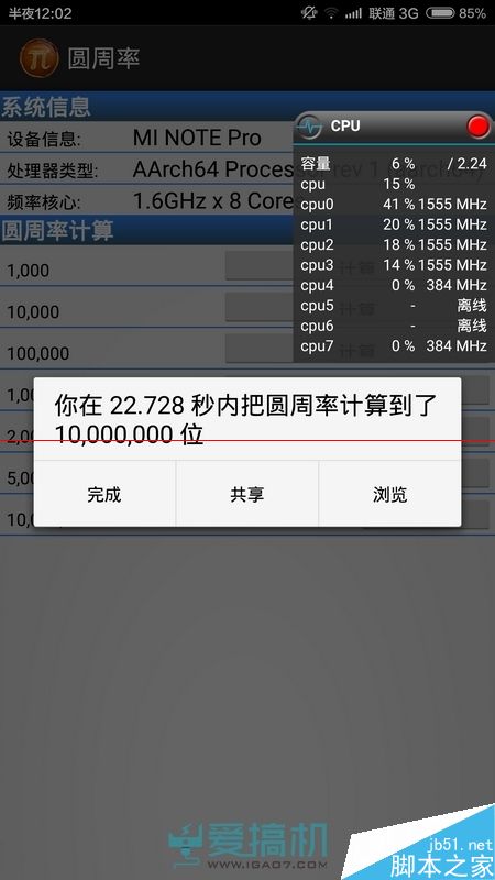 圆周率测试中,小米Note顶配版也的确比其他相同SoC的手机更强,看来小米对骁龙810的优化水准的确要比其他厂商更高。