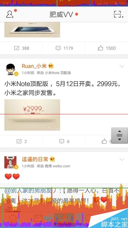 我们打开GPU呈现曲线查看小米Note顶配版运行应用的流畅性,在新浪微博中基本上可以保证滑动流畅。