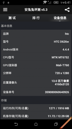 系统方面HTC Desire 626w采用了Android 4.4.4操作系统,同时搭配HTC招牌式的HTC Sense 6.0界面,没有直接使用Android 5.0还是令人比较意外的。
