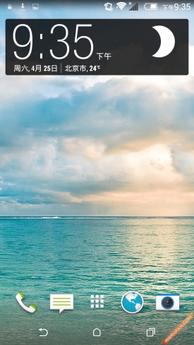 如众多采用Android 4.4系统的手机一样,HTC Desire 626w的顶部通知栏和底部虚拟按键栏都采用透明背景处理,可以与桌面进行很好的过渡。