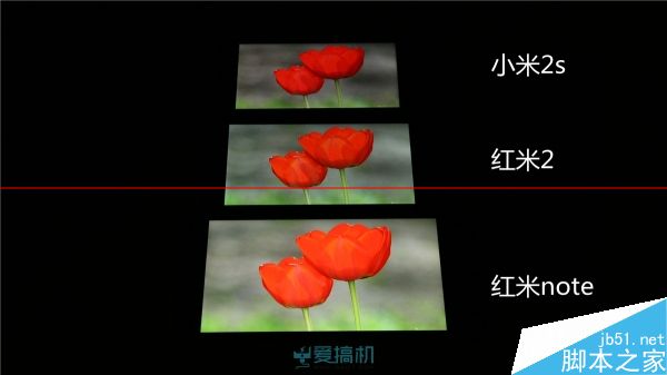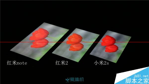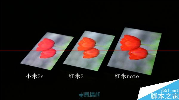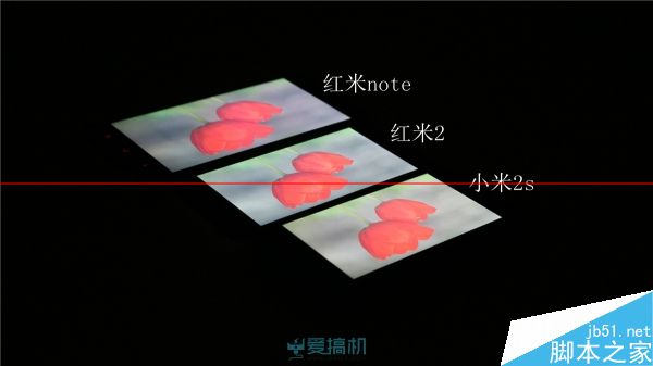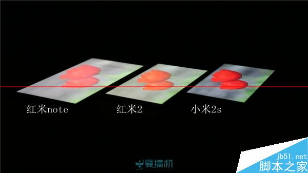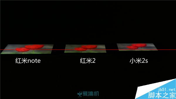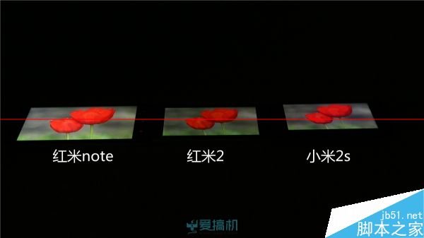 不过机身左下角看过去的死亡对角线上,红米2和红米note也有明显的泛白,而小米2s的泛白非常轻微。