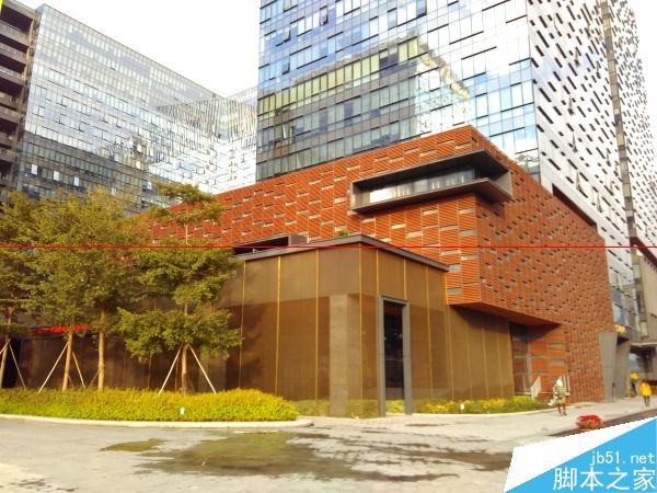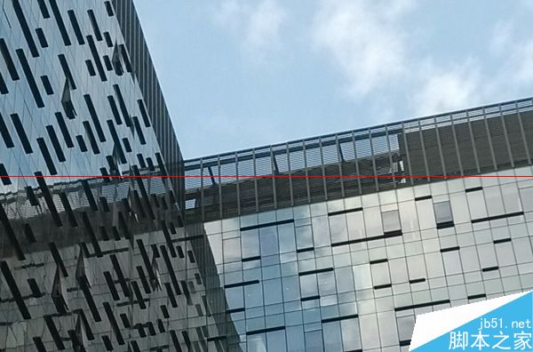 辨析力方面,属于800万像素的中等水平。样张放大到100%后,楼顶的横向格栅依旧可见。当然,和1300万像素的机器相比还是会有比较明显的差距的。