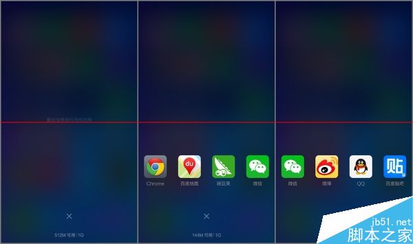 选择高级模式后,连续打开微信微博、QQ、贴吧这四大金刚后的可用内存仍有270m以上,再打开豌豆、地图、chrome后才出现内存捉鸡的情况。不过进入高级模式后能感觉到机器变卡了,可能是压缩内存耗费了部分CPU资源。