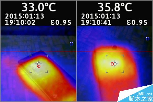 而人手心33度,指尖32-33度的温度,拿着红米是温手,而小米2s则是暖手了。