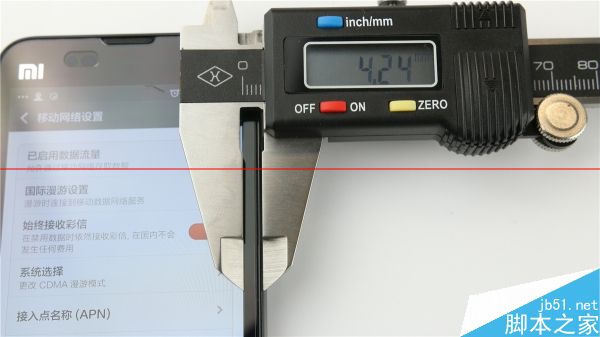 小米2s整框厚度4.24mm,不过其实它的后盖是向外突出的,实际摸上手边框更厚一点。