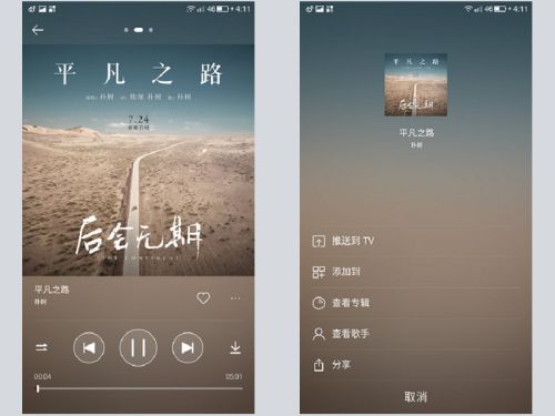 音乐功能支持实时推送到TV,也算实现了多屏互动。