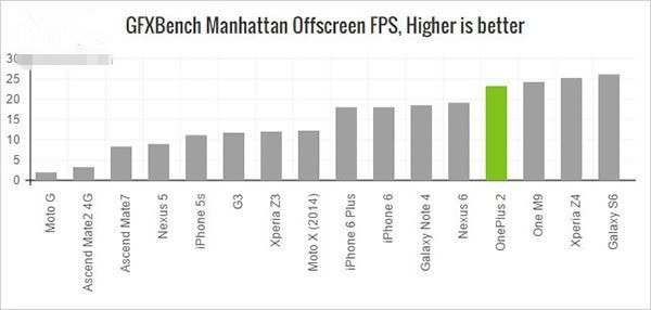 一加手机2配备了高通骁龙810处理器,并且,据一加方面称,该手机配备的骁龙810是“不发烧”的版本,能耗控制更好。为此,外媒通过GFXBench测试了一加手机2的性能,结果也印证了一加的说法。一加手机2上的骁龙810虽然发热更低,但相比HTC One M9、索尼Xperia Z4, 一加手机2的性能确实更弱一点,不过,该机仍然处于性能第一梯队的位置。