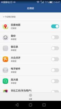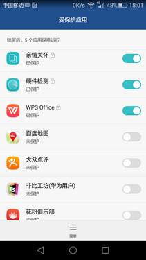 拥有指纹的手机基本上都内置应用程锁功能,荣耀7i也不例外,当用户设置好密码和指纹后,通过手机管家进入应用锁界面,可对手机里的所有应用程序进行上锁,这样就算手机丢失或者被熊孩子拿去玩,也不怕个人隐私泄露,起到很好的保护作用。