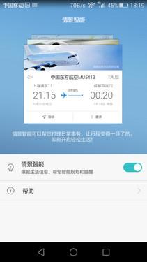 当你订了飞机或者火车票,是喜欢看短信还是直观的电子票呢?答案不言而喻,荣耀7i的情景智能不仅能够根据短信内容自动生成电子票,还会根据天气好坏提醒你带伞更衣,犹如小秘书跟在身边一样。另外,该机桌面的简易风格采用卡片式按键,适合中老年消费者使用。