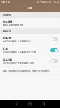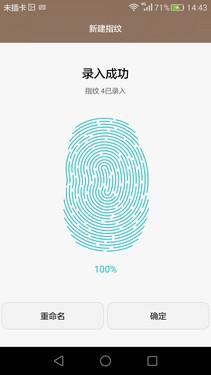 荣耀7i的指纹管理最多能够录入5组指纹,每录一个指纹需要反复轻触指纹器识别。其实,在实际使用过程中也就是左手的拇指以及右手的食指和中指属于常用指纹,剩下2组可录可不录。录好后的指纹可用在来电接听、拍照、加密等方面,既实用又安全。