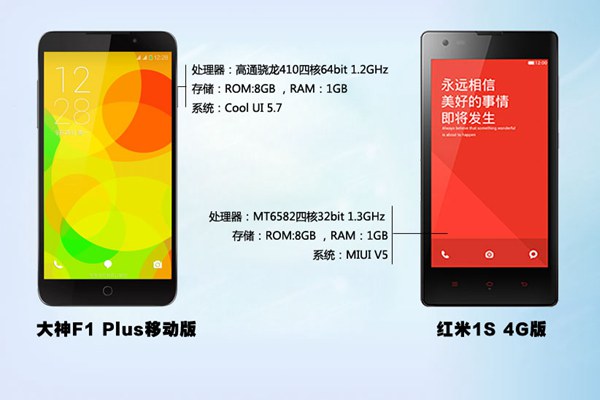 | 大神F1 Plus与红米1S 4G版参数对比 | ||