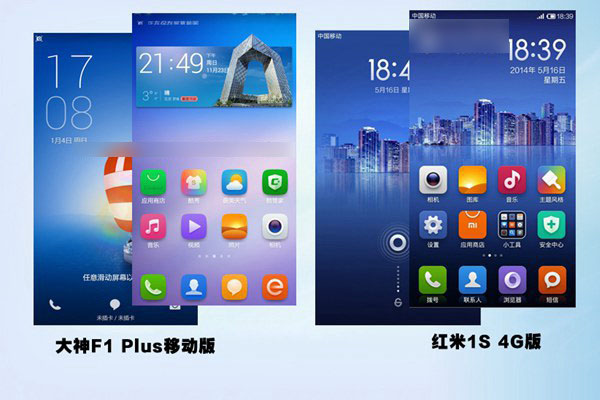 大神F1 Plus移动版采用的是Cool UI 5.7,红米1S 4G版采用的是MIUI V5,都是基于安卓4.4系统,两个系统各有千秋,实际操作体验也是非常出色。