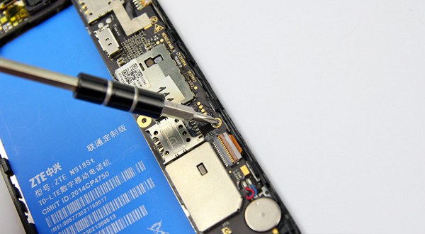 接下来我们就具体来看看中兴V5S内部拆机拆解了。取出电池后,我们接下来就是需要拆解中兴V5S内部的固定螺丝了,中兴V5S内部采用十字螺丝固定,拆解上还是比较容易的。