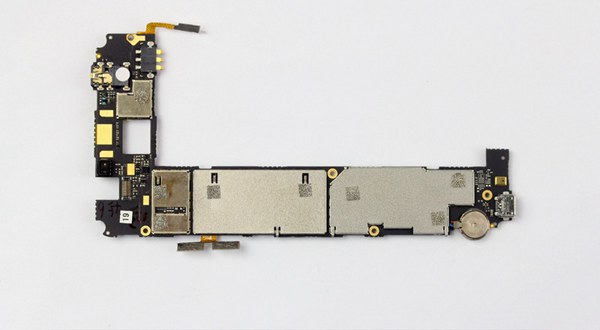 拆卸中兴V5S手机内部中框后,我们发现该机主板依然是采用黑色PCB板,相较绿色、蓝色板材而言,一般情况下黑色质量更好一些。