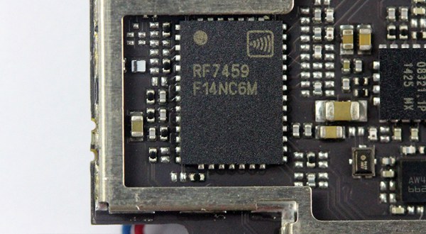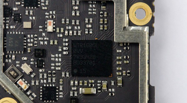 下面这枚是高通WTR1605L射频芯片,这枚LTE芯片将使用28nm工艺打造,这意味着其能耗将进一步降低,也正是因为有了它,这款手机才支持4G网络。