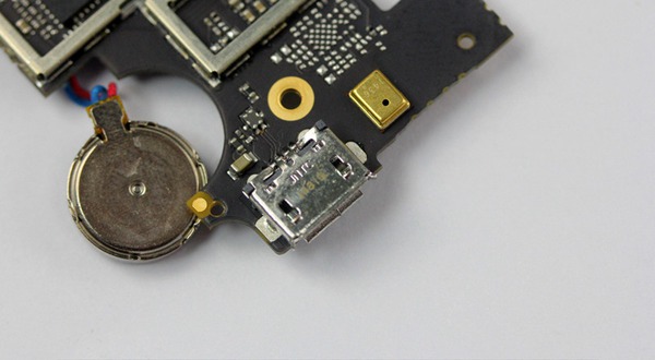 在mirco USB接口旁边总是伴随一个降噪MIC,这已经是中兴V5智能手机的惯用设计了。
