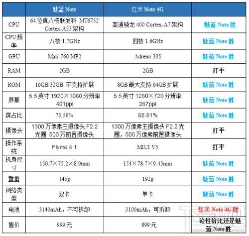 魅蓝note与红米Note 4G哪个好?魅蓝note与红米Note4G参数对比