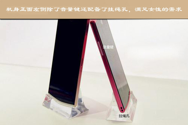 机身正面左侧上方设置了音量键,左侧底部是一枚充满人性化的挂绳孔