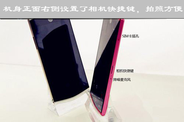 粉红色机身搭配4.7寸IPS技术720P显示屏,采用造型超窄边框,AA区到边缘只有2.7mm。