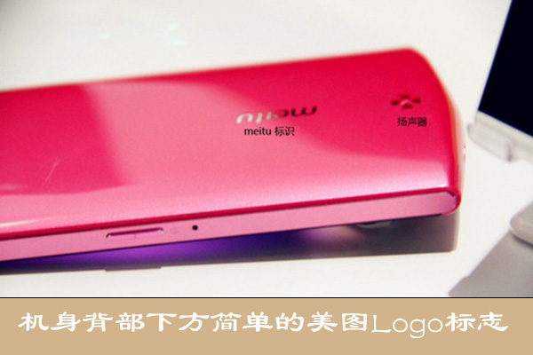 机身背部下方是简单的meitu标识,靠近底部的位置是一枚四叶草形状的扬声器。