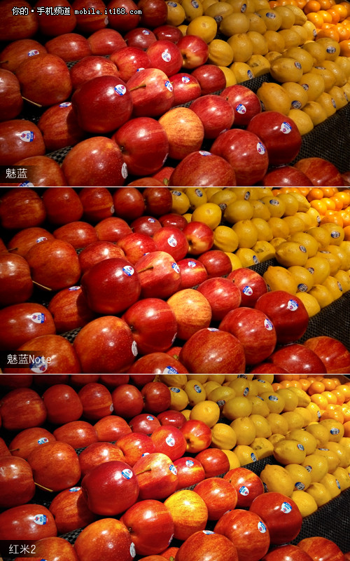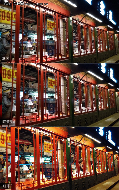 ▲魅蓝、魅蓝Note以及红米2的室内样张对比