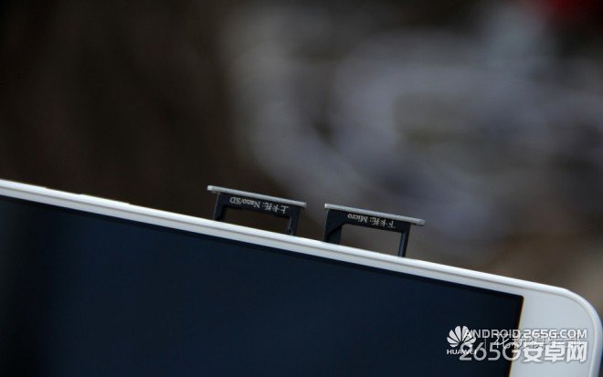 荣耀6Plus支持双卡双待,采用nano SIM卡和micro SIM卡并存,插卡方式取消了荣耀6的打开外部软垫的方式,而是用两个金属卡托取代。特别的是,荣耀6Plus将micro SD卡扩展槽设计在了nano SIM卡托下面,不细看的话还真不容易察觉。略微不便的是,这样的取卡插卡方式需要利用卡针实现,不过稳定性和整体性更好一些。