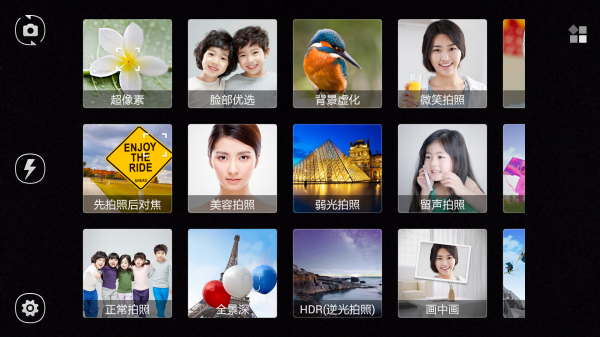 拍照的界面较为简洁直观,即使是第一次大神F2高清版使用的用户,都能轻易上手。在拍摄功能方面,大神F2高清版加入了众多专业和趣味的摄影增强功能,如先拍照后对焦模式、背景虚化模式、HDR模式和女生最爱的美颜模式等等。
