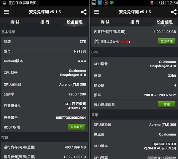 话不多说,下面我们通过最新的安兔兔跑分软件,来测试一下这款中兴V5S跑分成绩如何,如下图所示。
