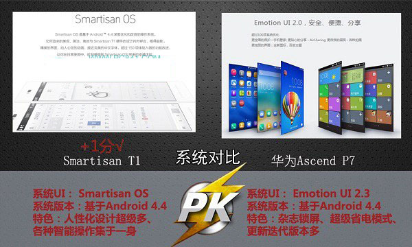 而华为P7运行的是Emotion UI2.3系统,同样基于安卓4.4内核,其系统已经显得十几成熟,具有超级盛典模式,杂志锁屏等特性。
