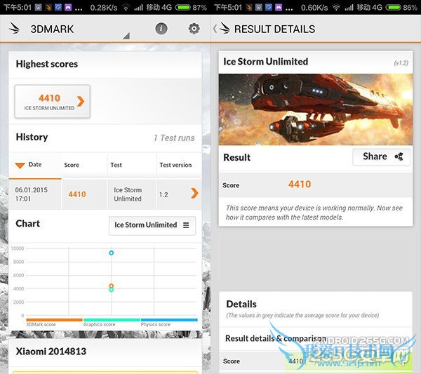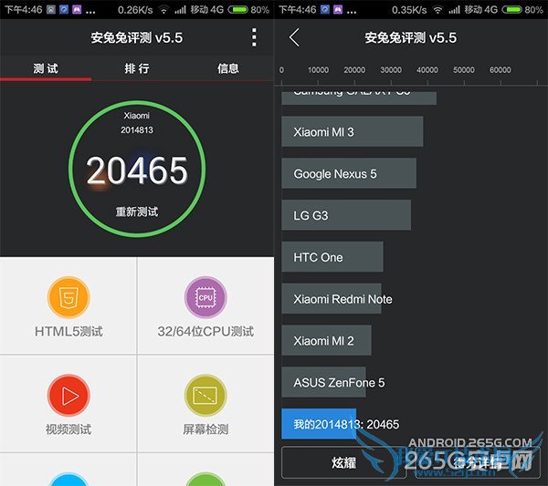从测试结果看,得分基本符合其硬件配置需求。通过日常试用发现,红米手机2运行MIUI 6系统非常流畅,和小米3/4这种旗舰定位的手机相比毫不逊色。而运行像《狂野飙车8:极速凌云》此类对3D图形性能要求较高的游戏时,也能满足用户正常游戏的需求。可以说小米对于低配置手机的优化还是很出色的。