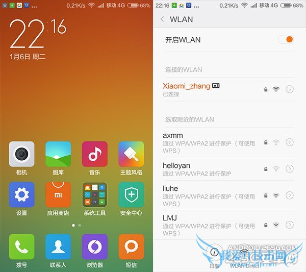 系统方面没得说,红米2运行了基于Android 4.4而定制的MIUI 6系统界面,可以使用MIUI 6的诸多新特性:例如公共场所免费WiFi功能,可在全国20000多个公共场所免费使用无线网络,节约流量。