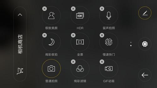 在这些拍摄模式中,经常用到的可能也就那么几个,其它不常用的模式可通过轻点右下角的笔尖进行删除操作,要是突然想用的话进入相机商店,找到相对应的拍摄模式点击安装即可。