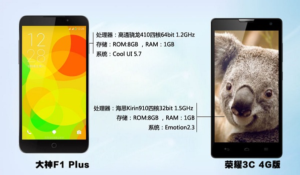 | 大神F1 Plus和荣耀3C 4G版参数对比 | ||