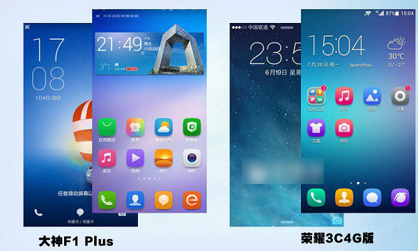 酷派大神F1 Plus采用的是Cool UI 5.7,华为荣耀3C 4G版采用的是Emotion 2.3,都是基于安卓4.4系统,两个系统各有千秋,实际操作体验也是非常出色。