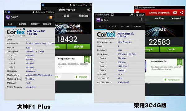 大神F1 Plus和荣耀3C哪个好 荣耀3C对比大神F1 Plus评测