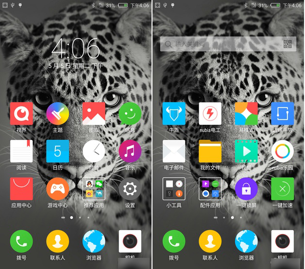 nubia UI 3.0在细节之处做了诸多方面的研磨,除了图标风格、快捷操作等方面,对于容易被忽略的界面字体也没有忘记。nubia Z9的界面字体可以根据主题颜色自适应,比如采用较明亮的壁纸时字体会自动调整为更易见的黑色;反之则调整为白色。这样的细节尤其体现了其人性化之处,值得赞赏。