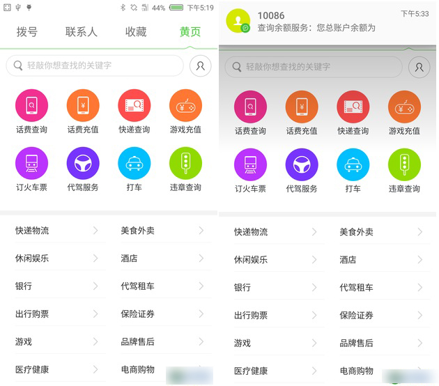▲ 点击话费查询 确认之后马上会收到查询结果短信