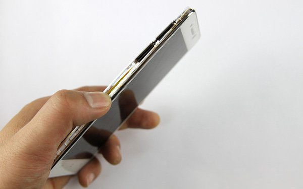 最后我来看看青葱X1的屏幕面板,其面板较厚,至少占据手机厚度的三分之二,如下图所示。