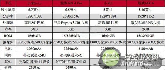 相关问题:小米note,小米4和魅族mx4 pro究竟哪个好