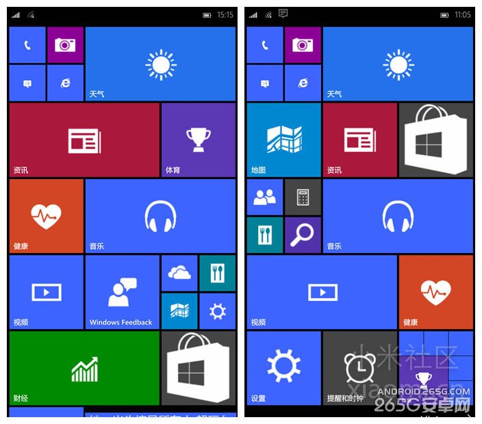 Win10版小米4的桌面看上去和之前一样,依然采用“瓷贴式”设计,没有改变微软系列手机的经典特色。然而有所不同的是本次更新新增了几款瓷贴的样式。在这样的桌面上任由你发挥,喜欢将某个图标放大或者缩小,将APP列表的图标添加到桌面,或者集成文件夹都可以。
